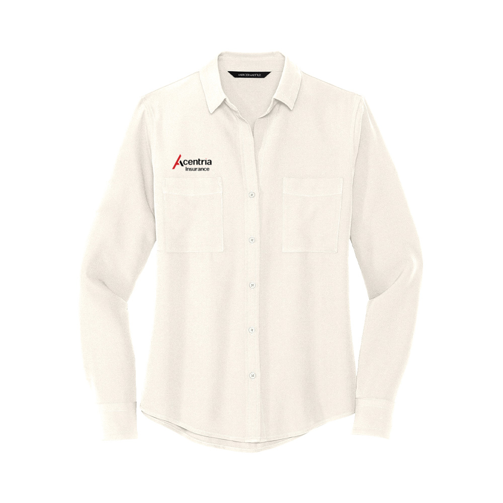 MADE TO ORDER - Mercer + Mettle® Stretch Long Sleeve Camp Blouse - White